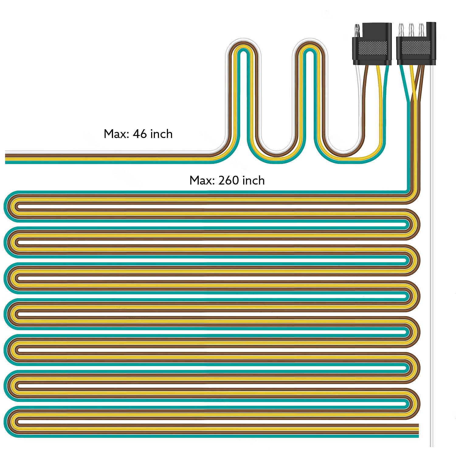 Suzco 25 Foot 4 Wire 4 Flat Trailer Light Wiring Harness Extension Kit 4 Way Plug 4 Pin Male Female Extension Connector Wishbone Style With 18 Gauge White Ground Wire With Sae J1128